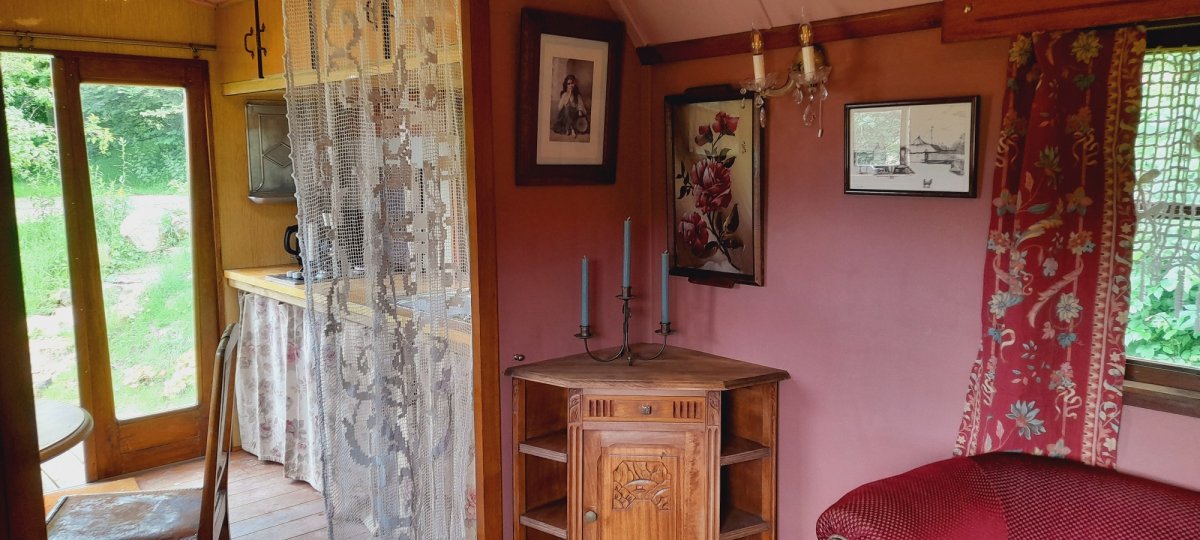 cabane comprenant un mini salon et un lit 2 places